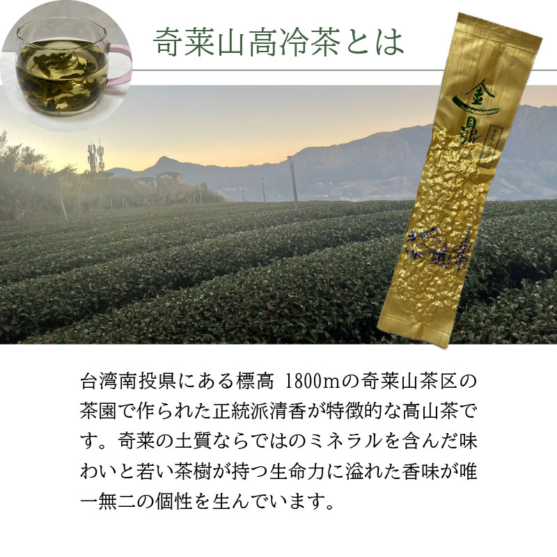 台湾南投県にある標高1800mの奇莱山茶区の茶園で作られた正統派清香が特徴的な高山茶です。